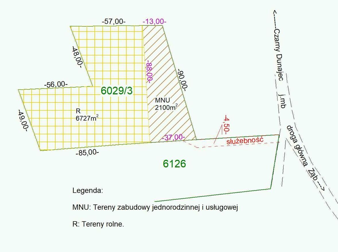 Dostęp do drogi: z drogi głównej przez służebność po działce nr 6126 o szerokości 4,5m. Droga nie urządzona,